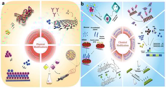 The most representative physical (a) and chemical (b) modifications of polymers. Reproduced with permission from Ref. [6]. Copyright 2019 WILEY-VCH Verlag GmbH & Co. KGaA, Weinheim, Germany.