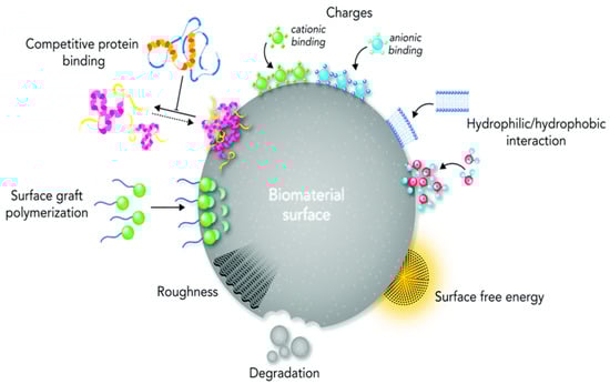 - Rahmati, M.; Silva, E.A.; Reseland, J.E.; Heyward, C.A.; Haugen, H.J. Biological responses to physicochemical properties of biomaterial surface. Chem. Soc. Rev. 2020, 49, 5178–5224. [Google Scholar] [CrossRef]