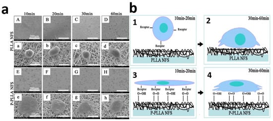 Electrospun PLLA nanofibrous scaffolds were treated for 60 s using PDC-002 plasma (USA) in the presence of oxygen. The chamber was evacuated to less than 10 mTorr before it was filled with gas, followed by the generation of glow-discharged plasma for a predetermined time [78].