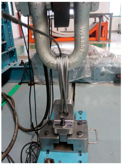 The test piece and the adapter are connected and tightened by bolts; the adapter is connected with the slider, and then, the adapter is inserted into the indenter. The above-mentioned overall structures are placed on the inclined blank component fixed on the load-bearing ground rail, and the actuator is connected with the slider through a multi-strand wire rope, as shown in Figure 2. The loading control equipment for the pull-off and bending test of the laminate test piece adopt a multi-channel coordinated loading control system. The error of the coordinated loading control system is less than 1%, which met the requirements of the task book for loading accuracy.