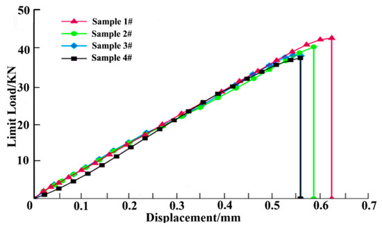Before starting the test, a static load spectrum is created. The loading system and displacement (test parts are required to be close to the fixture) are set to zero. Different load intensities are exerted to monitor the displacement. During the tensile process, the initial failure load, maximum load, and corresponding displacement are recorded with displacement control until the specimen is fractured.