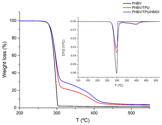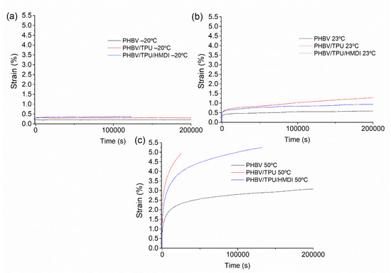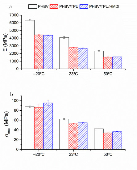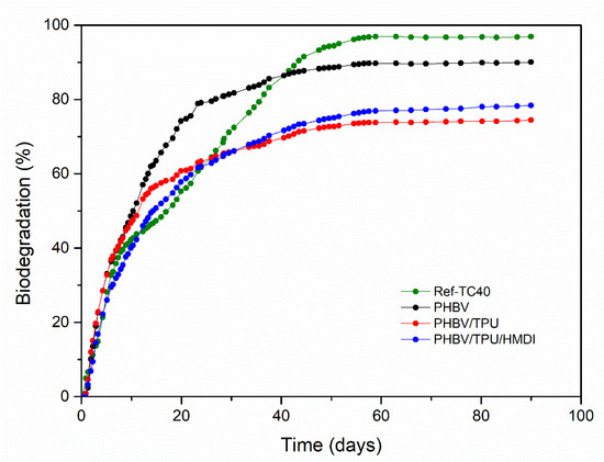 - Martínez-Abad, A.; González-Ausejo, J.; Lagarón, J.M.; Cabedo, L. Biodegradable poly(3-hydroxybutyrate-co-3-hydroxyvalerate)/thermoplastic polyurethane blends with improved mechanical and barrier performance. Polym. Degrad. Stab. 2016, 132, 52–61. [Google Scholar] [CrossRef]