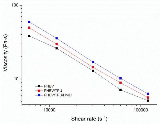 - Increase in melt viscosity due to the increased interfacial adhesion between PHBV and TPU.