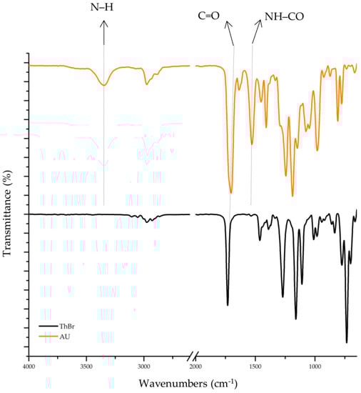 FTIR spectra of monomers ThBr and acrylate-urethane.