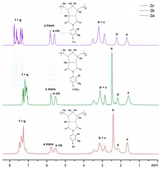 2.4.3. Synthesis and Characterization of Poly(N-4-(trifluoromethylthio)phenyl-exo-norbornene-5,6-dicarboximide) (2c)