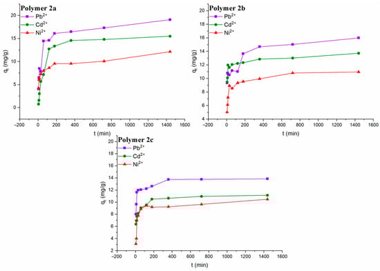 R2 values point out that the pseudo-second-order model better describes the heavy metal adsorption on these polymers and that the theoretical maximum capacity of adsorption (