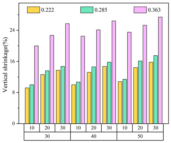 The change rate of the sensors’ vertical size, similar to that of the horizontal size, is shown in Figure 4. It increased with the addition of the spandex content, wales, and courses, which was mainly affected by the elastic shrinkage property of spandex and the number of leg yarn segments. The change rate of samples with vertical size exceeded that of those of horizontal size. The probable explanation is that the length of the needle and the sinker loop is shorter than the leg yarn segment in a loop with a compact arrangement. Therefore, the length change of the latter surpasses the former when subjected to heat contraction, leading to a higher vertical shrinkage rate.