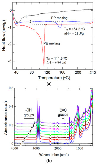 - Focke, W.W.; Van Der Westhuizen, I. Oxidation induction time and oxidation onset temperature of polyethylene in air. J. Therm. Anal. Calorim. 2010, 99, 285–293. [Google Scholar] [CrossRef]