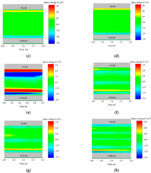 - Zha, J.W.; Wu, Y.H.; Wang, S.J.; Wu, D.H.; Yan, H.D.; Dang, Z.M. Improvement of space charge suppression of polypropylene for potential application in HVDC cables. IEEE Trans. Dielectr. Electr. Insul. 2016, 23, 2337–2343. [Google Scholar] [CrossRef]