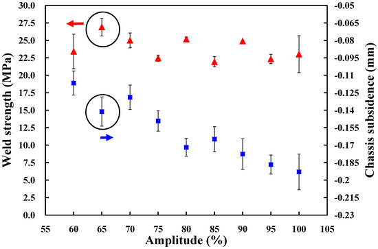 Effects of the different amplitudes on weld strength and chassis subsidence.