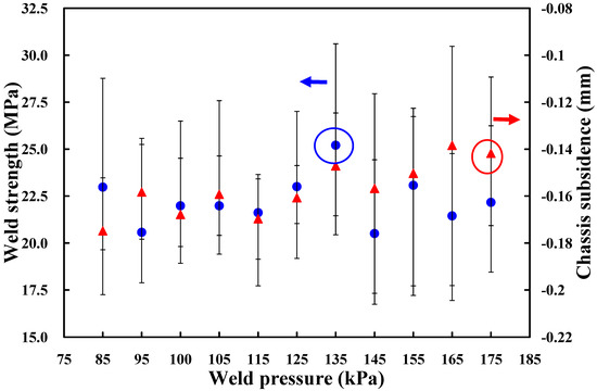 Effects of different weld pressures on weld strength and chassis subsidence.