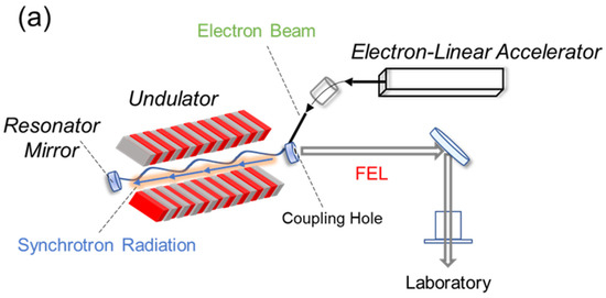 - Hayakawa, Y.; Sato, I.; Hayakawa, K.; Tanaka, T.; Nakazawa, H.; Yokoyama, K.; Kanno, K.; Sakai, T.; Ishiwata, K.; Enomoto, A.; et al. First lasing of LEBRA FEL at Nihon University at a wavelength of 1.5 μm. Nucl. Instrum. Methods Phys. Res A 2002, 483, 29–33. [Google Scholar] [CrossRef]