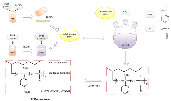 - Qiu, X.; Li, W.; Zhang, S.; Liang, H.; Zhu, W. The Microstructure and character of the PVDF-g-PSSA membrane prepared by solution grafting. J. Electrochem. Soc. 2003, 150, 917–921. [Google Scholar] [CrossRef]