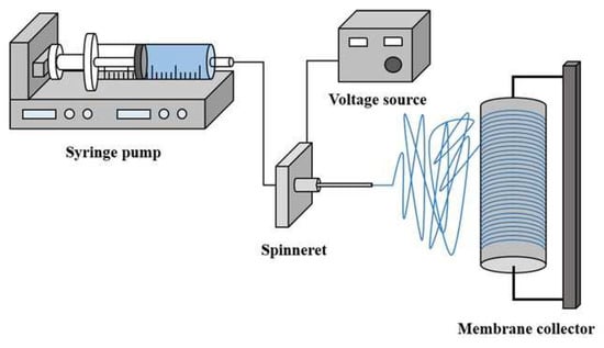 The electrospinning setup for fabrication of nanofibers. Reproduced from [], MDPI, 2018.