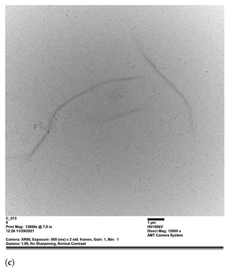 Micrograph Images for buffer #1, #2, and #3. These images were taken from the JEOL 1400 TEM. (a) Buffer #1; (b) Buffer #2; (c) Buffer #3.
