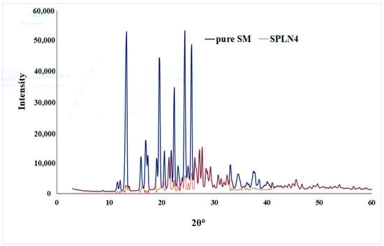 XRD spectra of pure SM and optimized LPHNPs (SLPN4).