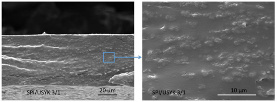 SEM photographs of the USYK-SPI bioplastic film (volume ratio: SPI/USYK of 3/1).