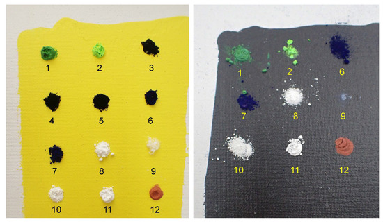 - Perego, F. Dictionnaire des Matériaux du Peintre; Editeur Belin: Paris, France, 2005. [Google Scholar]