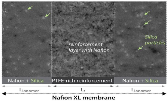 STEM image of the baseline Nafion XL membrane showing the reinforcement layer and additives (Reprinted/adapted with permission from [55] 2022, Asmaa Selim).