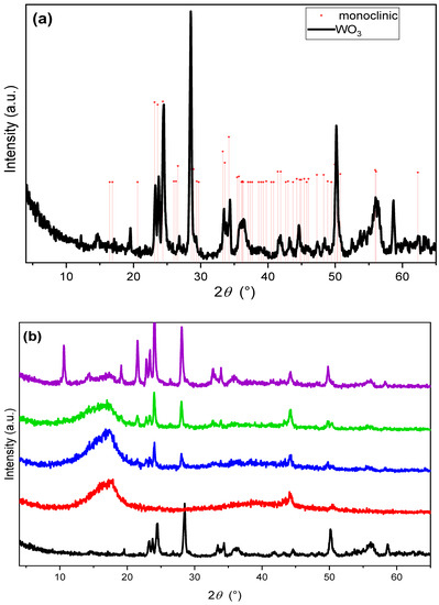 - Hatel, R.; Baitoul, M. Nanostructured Tungsten Trioxide (Wo3): Synthesis, Structural and Morphological Investigations. J. Phys. Conf. Ser. 2019, 1292. [Google Scholar] [CrossRef]