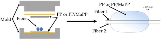 - Zarges, J.-C.; Kaufhold, C.; Feldmann, M.; Heim, H.-P. Single fiber pull-out test of regenerated cellulose fibers in polypropylene. Compos. Part A Appl. Sci. Manuf. 2018, 105, 19–27. [Google Scholar] [CrossRef]