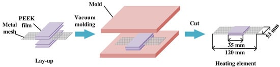 - Ageorges, C.; Ye, L.; Hou, M. Experimental investigation of the resistance welding for thermoplastic-matrix composites. Part I: Heating element and heat transfer. Compos. Sci. Technol. 2000, 60, 1027–1039. [Google Scholar] [CrossRef]