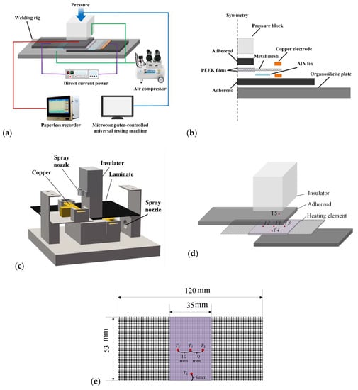 - Ageorges, C.; Ye, L.; Mai, Y.-W.; Hou, M. Characteristics of resistance welding of lap shear coupons. Part I: Heat transfer. Compos. Part A Appl. Sci. Manuf. 1998, 29, 899–909. [Google Scholar] [CrossRef]