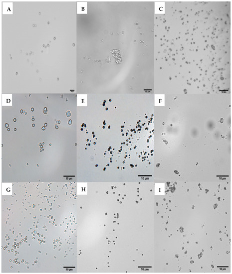 Figure 3). The three types of alginates were compared for the morphology and size of the microparticles they formed, as medium viscosity is known to influence microparticle properties [