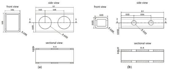 Dimensions in mm of EW (a) and LW (b) tracheid CAD model.