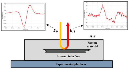 Many insulating materials are polymers that are translucent to THz waves [26]. Thus, THz waves can propagate through insulating materials and be reflected by internal interfaces such as the defect structure. Figure 1 shows this process. A THz pulse is incident into the sample, when it encounters an internal interface structure, a reflected pulse will be generated, which can be expressed as follows [27]: