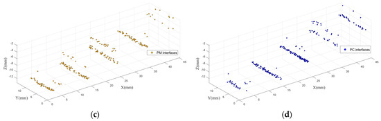 The holes in the PE block can be imaged in 3D as follows: After the PE block sample was scanned, all the valid pulses in the scanning waveforms data were extracted by the rule of Equation (13) with , and . Each pulse corresponded to a point of a certain interface. According to basic optics laws, its location can be calculated by
