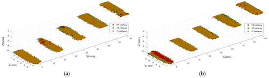 From Table 1, the PA interfaces are identified well at all depths. Compared with the PA interfaces, both the correct identification rates and the numbers of points of the AP interfaces are lower. However, for AP interfaces I–IV, the AP points are still the most. For void V, the identification performance of the AP interface is poor. The reason could be that the interface was greatly out of focus, which caused strong attenuation of the THz waves. It also can be seen that the number of all points varied greatly with depth. Therefore, the depth could greatly influence the imaging performance of the voids.
