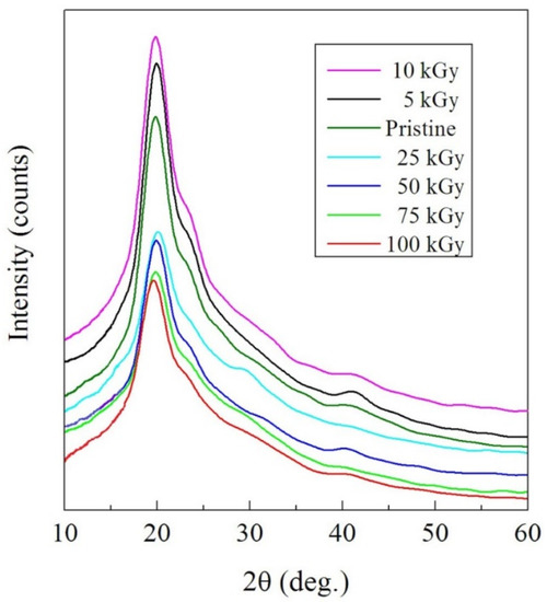 - Zhudi, Z.; Wenxue, Y.; Xinfang, C. Study on increase in crystallinity in γ-irradiated poly(vinylidene fluoride). Radiat. Phys. Chem. 2002, 65, 173–176. [Google Scholar] [CrossRef]