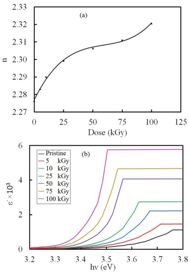 - Nouh, S.A.; Barakat, M.M.E.; Gupta, R.; Benthami, K.; Bahareth, R.A. Irradiation induced modification of optical properties of PANI-Cu/PMMA and PANI-Cu/CTA nanocomposites. Radiat. Eff. Defects Solids 2021, 176, 188–198. [Google Scholar] [CrossRef]