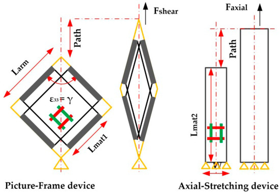 To detect the function’s specific expression, it is necessary to establish the relationship between the strain, the stress of the model and the displacement, the force from the tests. The following equations are given in combination with the dimension of the material and device. Specifically, for shear stress δShear and the strain εShear,