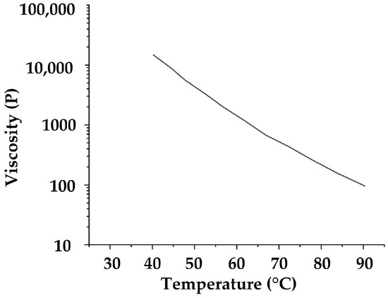 The relationship between resin viscosity and temperature in the exponential coordinate [50].