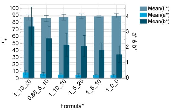 Significant and relevant influence of salt and solvent content on the optical properties was only found regarding the b* color value, where the color tends to get more yellow the more additives were added, which was observable even by eye (Figure 10).