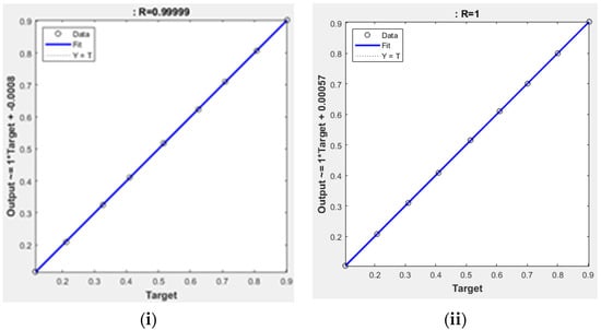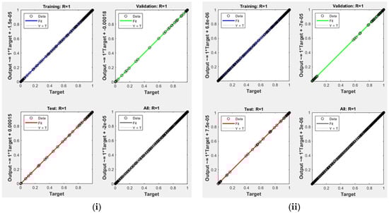 Regression of training, validation, and test plots for the selected (i) AN7-A, (ii) AN7-B.
