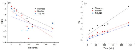 (a) Comparison of pseudo 1st-order graph; (b) pseudo 2nd-order graph.