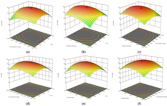 The interaction and optimization of three important independent variables, i.e., pH, initial concentration of Cr(VI) and adsorbent dosage were investigated by using response surface methodology. The Box–Behnken design was applied to predict and model the complex relations between the 3 parameters (pH, concentration and adsorbent dosage). The polynomial model was calculated through Design Expert 8.0 software and the formula could be described by Equation (12):