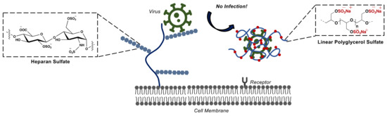 Competitive multivalent binding of a virus to a sulfated linear polyglycerol scaffold instead of heparan sulfate and infection inhibition.