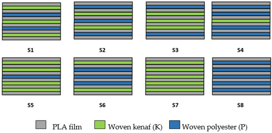 | Code | Laminate Configuration | Woven Polyester (P) | Woven Kenaf (K) | PLA | Thickness (mm) |