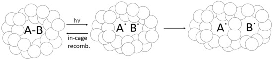 - Barry, J.T.; Berg, D.J.; Tyler, D.R. Radical Cage Effects: The Prediction of Radical Cage Pair Recombination Efficiencies Using Microviscosity Across a Range of Solvent Types. J. Am. Chem. Soc. 2017, 139, 14399–14405. [Google Scholar] [CrossRef]