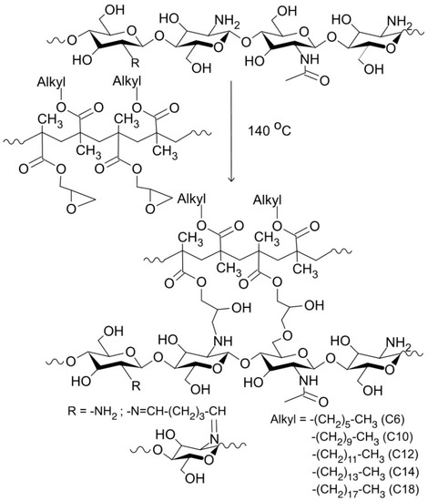 - Anbinder, P.; Macchi, C.; Amalvy, J.; Somoza, A. Chitosan-Graft-Poly(n-Butyl Acrylate) Copolymer: Synthesis and Characterization of a Natural/Synthetic Hybrid Material. Carbohydr. Polym. 2016, 145, 86–94. [Google Scholar] [CrossRef] [PubMed]