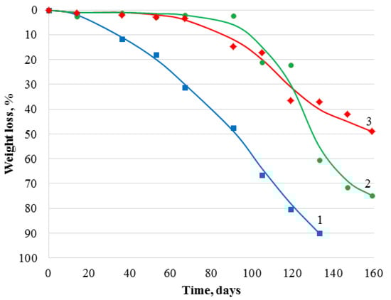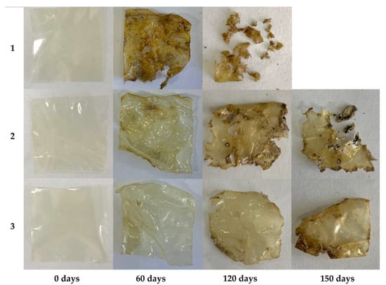 3.3. Biodegradability of Chitosan Materials Modified by GMA and AlMA Copolymers