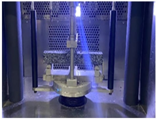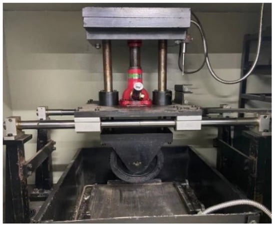 According to the standard test methods JTG E20-2011, The rutting experiments of SBS, SBS/MCF and SBS/SBR composite-modified asphalt mixture were carried out at 60 °C []. The experimental equipment is shown in Figure 2.