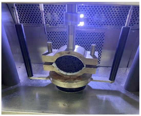 According to the regulations JTG E20-2011 [], cylindrical specimens were made, and the water stability of the asphalt mixture was evaluated by freeze-thaw splitting test. The experimental equipment is shown in Figure 4.