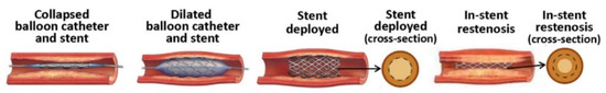 - Yin, R.X.; Yang, D.Z.; Wu, J.Z. Nanoparticle drug- and gene-eluting stents for the prevention and treatment of coronary restenosis. Theranostics 2014, 4, 175–200. [Google Scholar] [CrossRef]