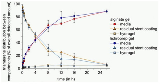 - Semmling, B.; Nagel, S.; Sternberg, K.; Weitschies, W.; Seidlitz, A. Development of Hydrophobized Alginate Hydrogels for the Vessel-Simulating Flow-Through Cell and Their Usage for Biorelevant Drug-Eluting Stent Testing. AAPS PharmSciTech 2013, 14, 1209–1218. [Google Scholar] [CrossRef][Green Version]