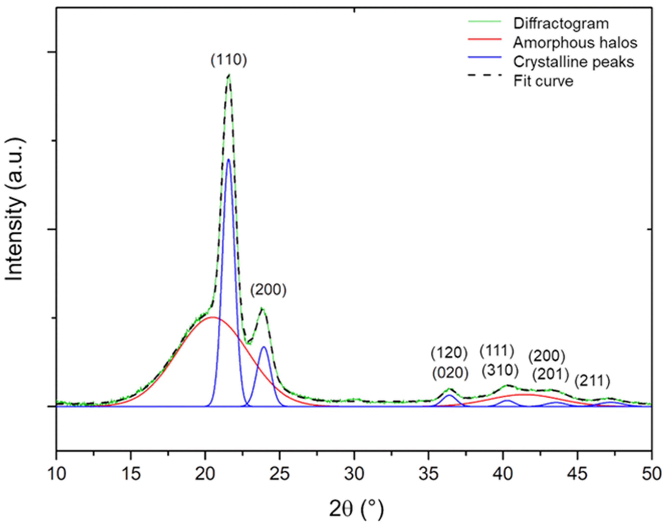 - Wojdyr, M. Fityk: A general-purpose peak fitting program. J. Appl. Crystallogr. 2010, 43, 1126–1128. [Google Scholar] [CrossRef]